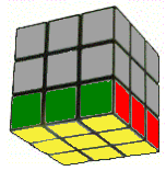 ルービックキューブは立体パズルですので、一面の色が揃っていても、その段の側面が合っていない場合は、揃っているとはいえません。右図のように一面とその段の側面がすべて合っていてこそ一面が揃っているといえます。この状態を完全一面といいます。