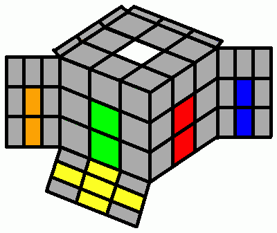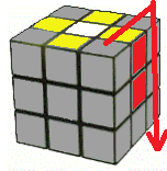 ●上面を回し、エッジピースの側面と側面のセンターピースの色を合わせ、180°回します。