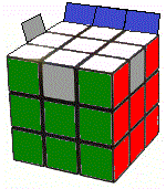 ●上段の4つのエッジピースのうちすでに位置の合っているエッジピースが1つだけある場合は、そのエッジピースが図8-1のように背面にくるように持ち、F2 U R' L F2 R L' U F2 と回します。